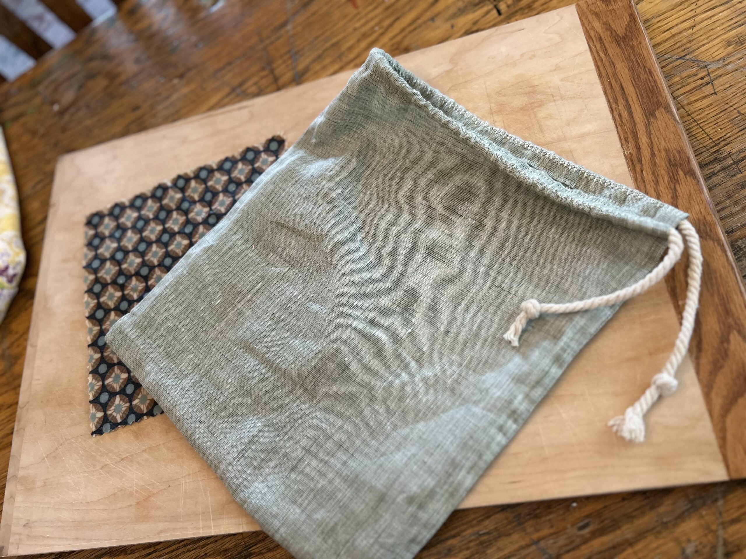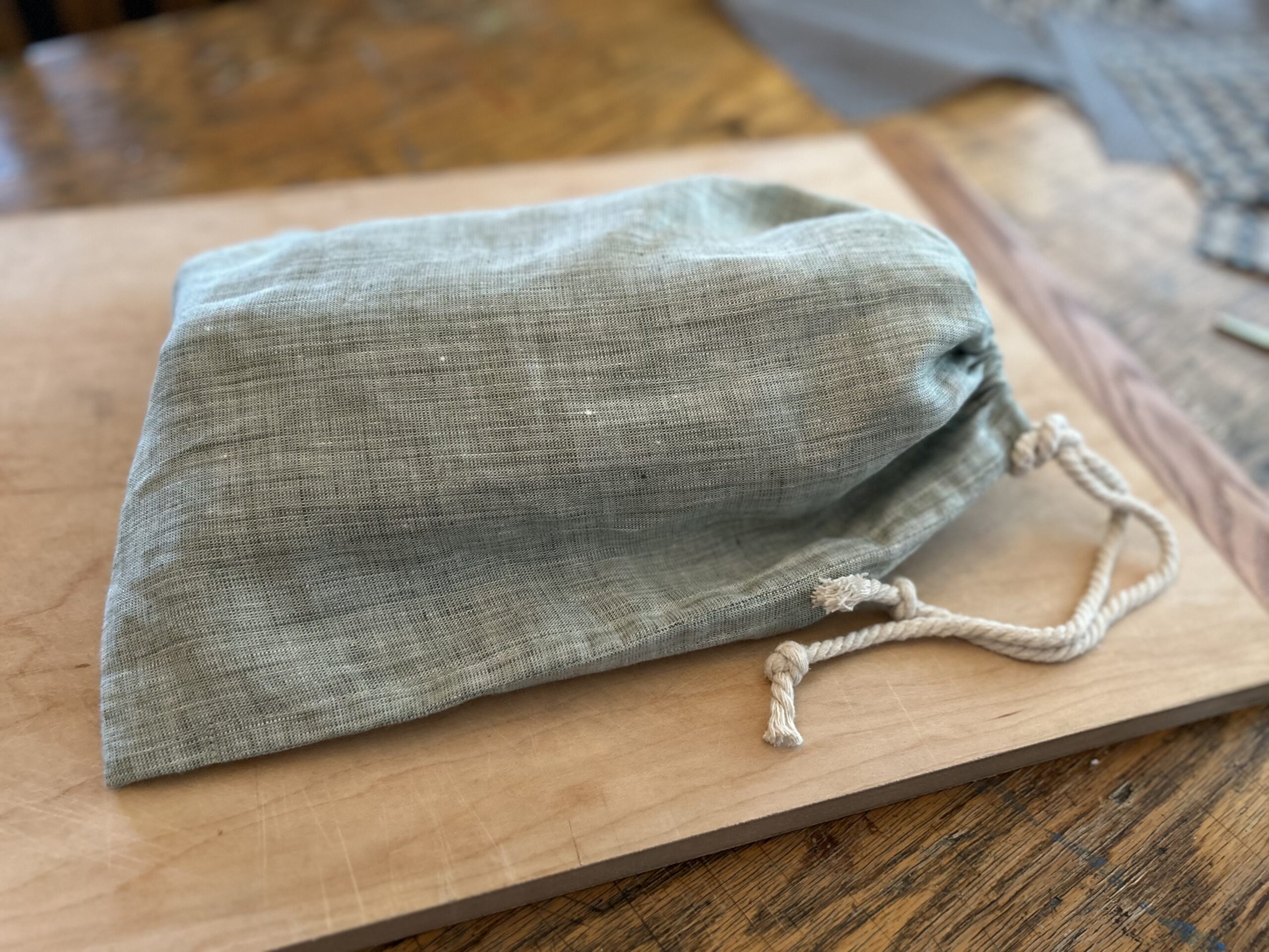 Home / Other / 100% Linen Bread Bag 100% Linen Bread Bag$15.00 1 in stock 100% Linen Bread Bag quantity Add to cart Category: Other Description Description This drawstring bread bag is made with all-natural linen fiber which allows the bread to breathe, last longer and retain textures. Linen has antibacterial properties that keeps bread fresh longer. Purchase of bag comes with a beeswax cotton fabric food wrap to cover the loaf’s cut end, which keeps it from drying out. Linen bag is machine washable. Beeswax food wrap cleans with a warm water rinse under sink faucet.
